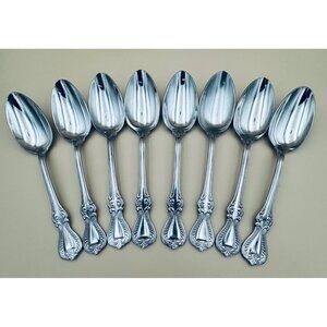 The Towle OLD COLONIAL 18/10 stainless soup spoons offer a glimpse into the elegance of bygone eras, showcasing intricate detailing synonymous with vintage craftsmanship.