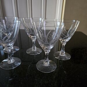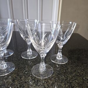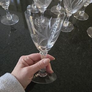 Set Of 8 Vintage Water Wine Dessert Goblet Glass Etched FOSTORIA Wheat