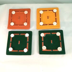 Set Of Four (4)Terra Cotta Coaster Oak & Maple Leaf Design Yellow, Orange, Green