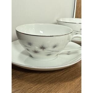 This listing is for Set Of Four Vintage Creative Fine China Platinum Star Burst Coffee / Tea