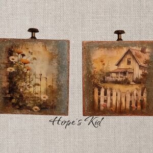 Beautiful Rustic Prints with Cascade Blue Base that has been Distressed