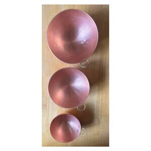 Set Of Three Copper Nesting Mixing Bowls Loop Handles Round Bottoms Unbranded