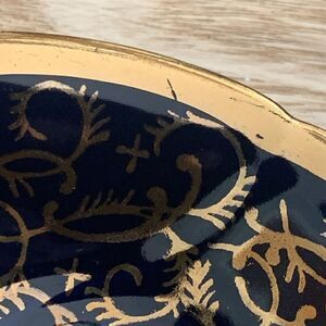 Set Of Three Small Dark Navy Blue & Gold Porcelain Saucers Signed Richard Ginori