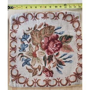 Gorgeous set of two 15" x 15" tapestry floral Victorian needlepoint pillow covers, cream background.