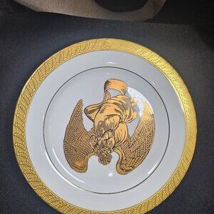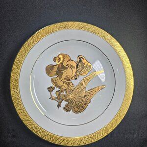 Just a gorgeous set of two 8.25 inch Centurion Collection 9414. Pure gold and white decorated Angel plates. These round collector plates are adorned with an elegant Christmas Angel design that's outlined in black. The rim on the plate also features the gold, as does the thin ring before the rim. The color scheme of white and gold adds an elegant and festive touch, perfect for all occasions. These two decorative plates are a beautiful addition to any collector's display or holiday decor. In mint condition, no. flaws. Non Smoking pet free home.
