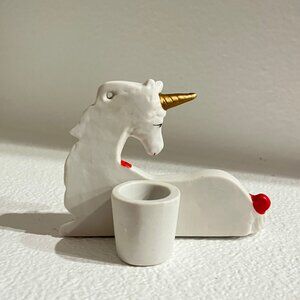Set Of Two Hand Painted Christmas Unicorn Votive Candle Holder Holiday Trinkets