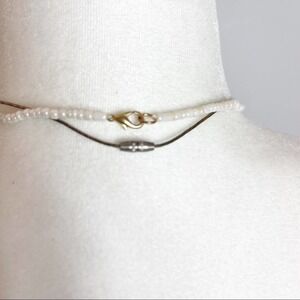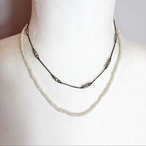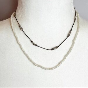 Set Of Two Vintage Necklaces White Beaded Silver Tone Metal