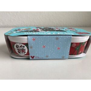 Set Of 2 Disney Mickey Minnie Mouse Ramekins Stackable Dessert Dish Mistletoe NEW