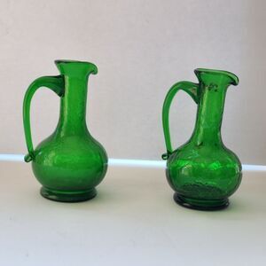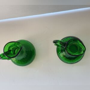 Set Of 2 Vintage Viking Handmade Green Crackle Glass Decanters