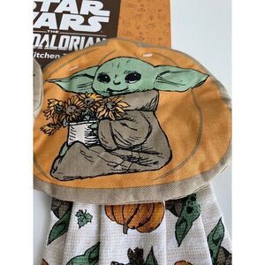 Set Of 2 Disney Baby Yoda Grogu Pumpkin Fall Autumn Kitchen Hanging Towels NEW