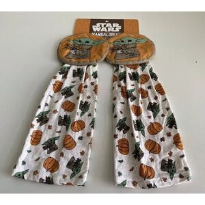 Set Of 2 Disney Baby Yoda Grogu The Child Mandalorian Star Wars Pumpkin Fall Autumn Kitchen Hanging Towels NEW