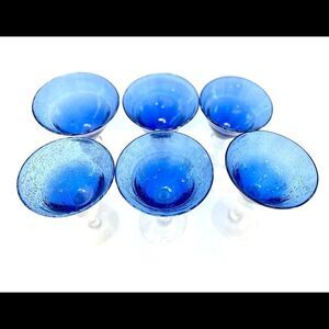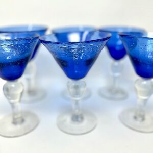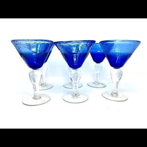 Set Of 6 HANDMADE Cocktail Martini Glasses Blue