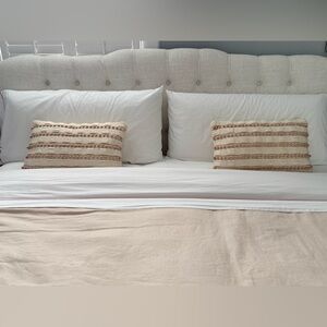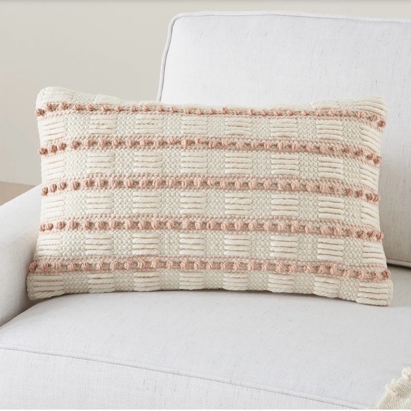 Set of two lumbar pillows. 12” x 20”. Cream & pink. Zipper closure. Insert included. Excellent condition. Smoke free home.