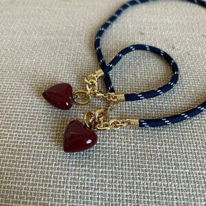 *Set* Roxanne Assoulin The Happy Cord Charm Necklace & Bracelet Navy/Burgundy