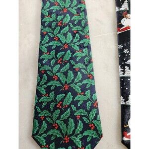 Get into the holiday spirit with this vintage set of three Christmas ties featuring Santa Claus and Holly characters. Perfect for any formal occasion, these neck ties are tied with classic width and made with high-quality materials. The multi-color design adds a festive touch to your outfit and is sure to impress.