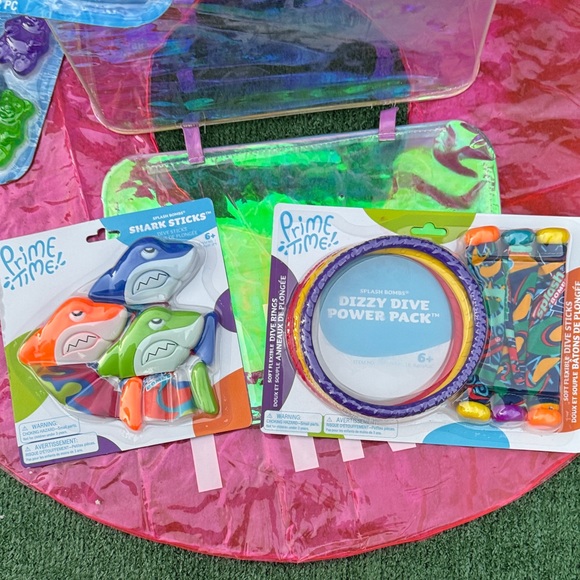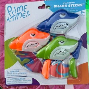 This bundle comes with shark sticks and dizzy, dive sticks and dive rings fun for the kids to do in the pool