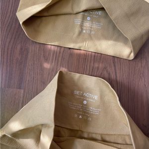 Bottoms are S top is M. In the color Cider. Always hung to dry. Not sold online