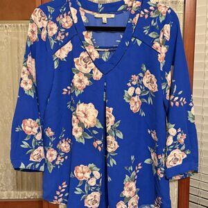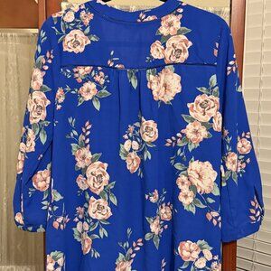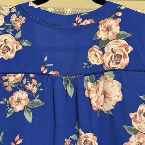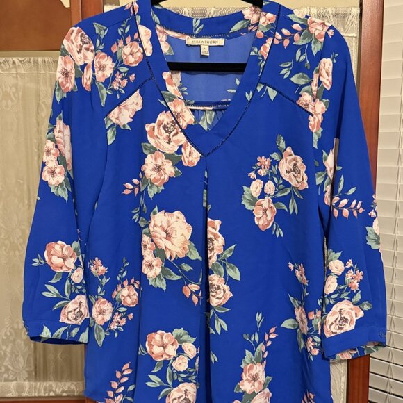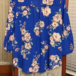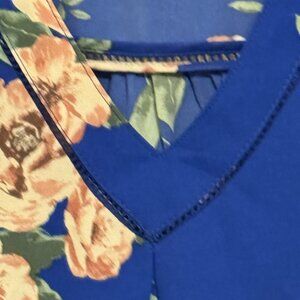 Welcome the coming months of flowers and sunshine with this beautiful blue top ready to pair with your favorite pair of jeans or white slacks. Wrinkle-free and