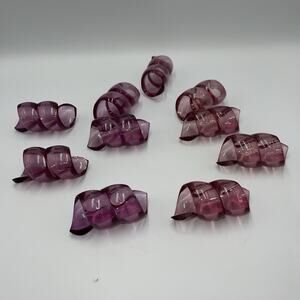 Set of 10 Mid-Century Purple Swirl Lucite Curl Napkin Rings Helix Twist