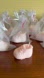 Set of 10 pink color baby shoes shaped soy wax decor candle in white color organza bag decor with plastic pink color baby bottle.