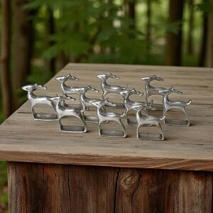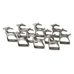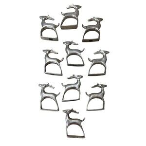 Set of 10 Vintage Silver Tone Deer Napkin Rings Mid Century Modern Table Decor