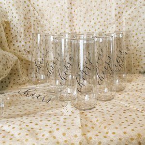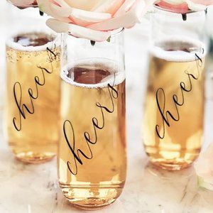 "Cheers" Shatter-Proof Champagne Flutes! These decorative flutes are the perfect addition to any celebration.
