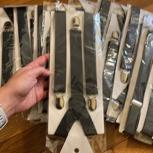Set of 12 Elastic Adjustable Y Back Suspenders Dark Grey NWT