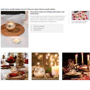 [Candle Holder Size] : 12 pcs Gold Candle Holders measures approximately 2ʺ (top diameter) x 2ʺH ,These elegant bowl-shaped gold votive candle holders are perfectly sized for regular tealight candles. (candles not included)