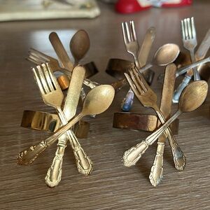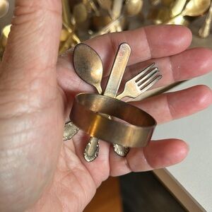 Set of 12 Gold Brass Metal Fork Knife Spoon Napkin Rings Holders