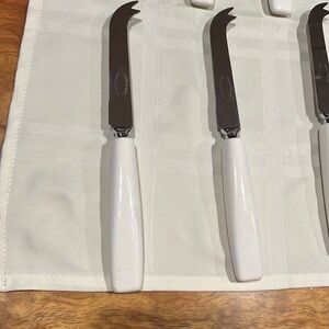 This is great set of Set of 12 Sheffield England Curved Tip Knife Knives White Ceramic Handle. Sharp. Very elegant. Made in England.