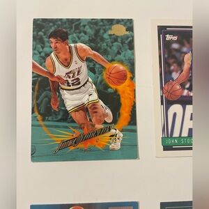 This set of 19 John Stockton basketball cards is a must-have for any sports trading card collector. These cards feature John Stockton during his time playing for the Jazz. Each card showcases his impressive skills on the court, making them a great addition to any collection.