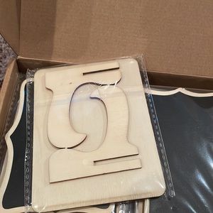 Each sign has a stand. There are extras labels for the chalkboards. There is a chalkboard pen that was used, not sure how great it works but will include with set. Signs and labels are all new in packaging.