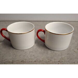 Set of 2 10 Strawberry Street Porcelain Mugs With Red Handles Gold Trim 8 Oz