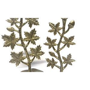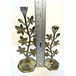 Set of 2 ~ 13" & 10" Gold tone Leaf and Acorn Tall Candlesticks made in India