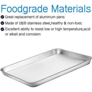 - Healthy Materials: No more aluminum into your food, great replacement to aluminum pan. The baking sheet is made of 18/0 stainless steel, without chemical coating,non-toxic,more healthier to you and your family.