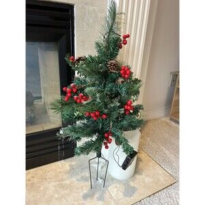 Set of 2 22 Outdoor / Indoor Pathway Christmas Trees, Battery Operated Pre-Lit Holiday Lights. They are approximately 30 inches tall with the stand. Changes color and various versions. Box opened to test the lights they are working. New in box.