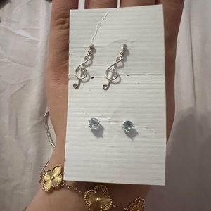 Set of 2 925 silver earrings music note