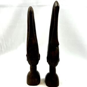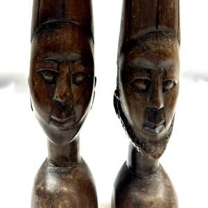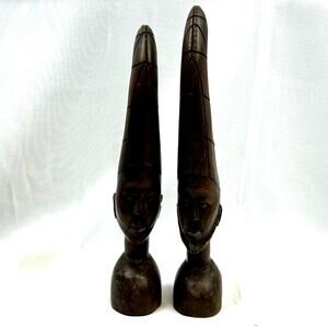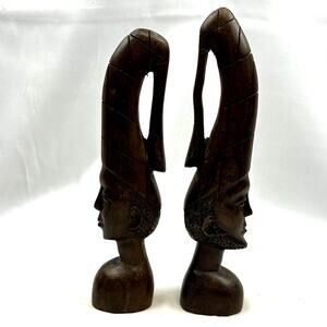 Set of 2 African bust Hand Carved man woman detailed Vintage beard 8.5? tall