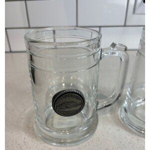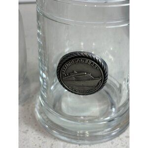 These large glass mugs feature a pewter medallion with a detailed image of the majestic cruise ship, making them perfect for enjoying your favorite beverages or using as decorative pieces.