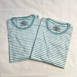 Set of 2 Amazon Essentials Men Blue Striped RegFit Crewneck T-Shirt 2XL