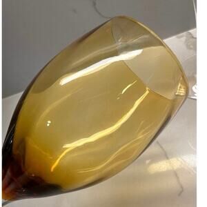Set of 2 Amber Optic Swirl Wine Glasses Clear Stems 9" Tall Blown Glass 10 oz