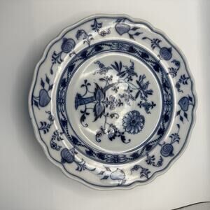 Set of 2 Antique Meissen Blue & White Blue Onion Print Plates 9.5”