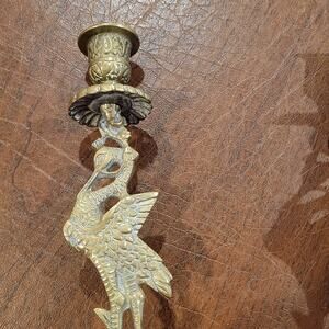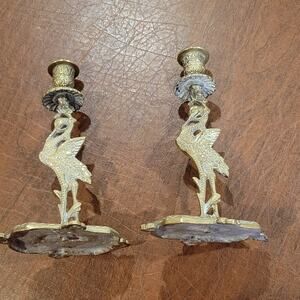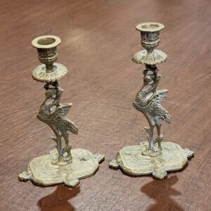 Set of 2 Antique Vintage Brass Stork Crane Candleholders 7.25" talll. Pre-owned, good shape, display item. Weight 1lb 10oz plus shipping materials.
