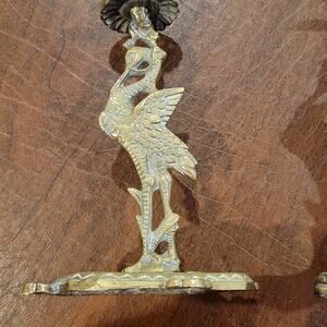 Set of 2 Antique Vintage Brass Stork Crane Candleholders 7.25" tall