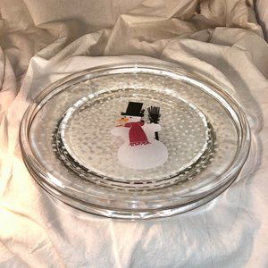 Set of 2 BODUM Glass 10" Winter Holiday Snowman Dinner Plates ~ Christmas Snow