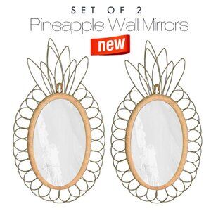 Set of 2 BRAND NEW IN BOX Gold Tone Pineapple Wall Mirrors Boho Jungalow Decor