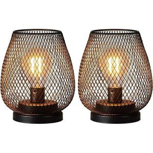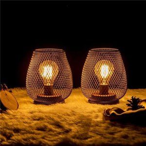 Set of 2 Battery Operated Lamp LED Table Lantern, Metal Cage Cordless Lamp