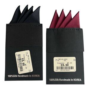 Set of 2 Bergamo New York 100% Silk Pocket Squares Black & Wine Handmade in Korea