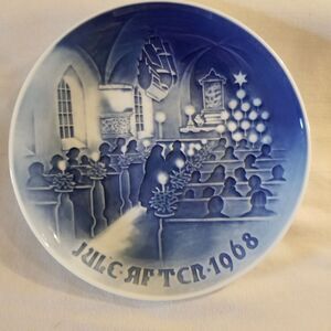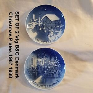 Set of 2 Bing & Grondahl B&G Denmark 1960's Xmas plates. One is 1967, Christmas Birds, one is 1968 Christmas in Church. They are both is super excellent condition. 7 1/4" across. I also have a B&G 1972 Munich Olympics listed.