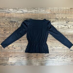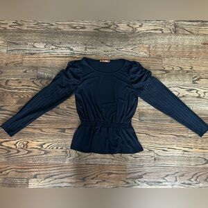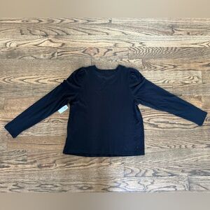 Versatile and timeless, this set of two black long sleeve tops is perfect for any capsule wardrobe. Both tops are size Medium and easy to mix, match, and layer. Old Navy one is brand new with tags (NWT) and slightly puffed shoulder, and the other (belldini) is gently worn in excellent condition with a cinched waiste patterned sleeve. Great for work, casual wear, or minimalist styling.